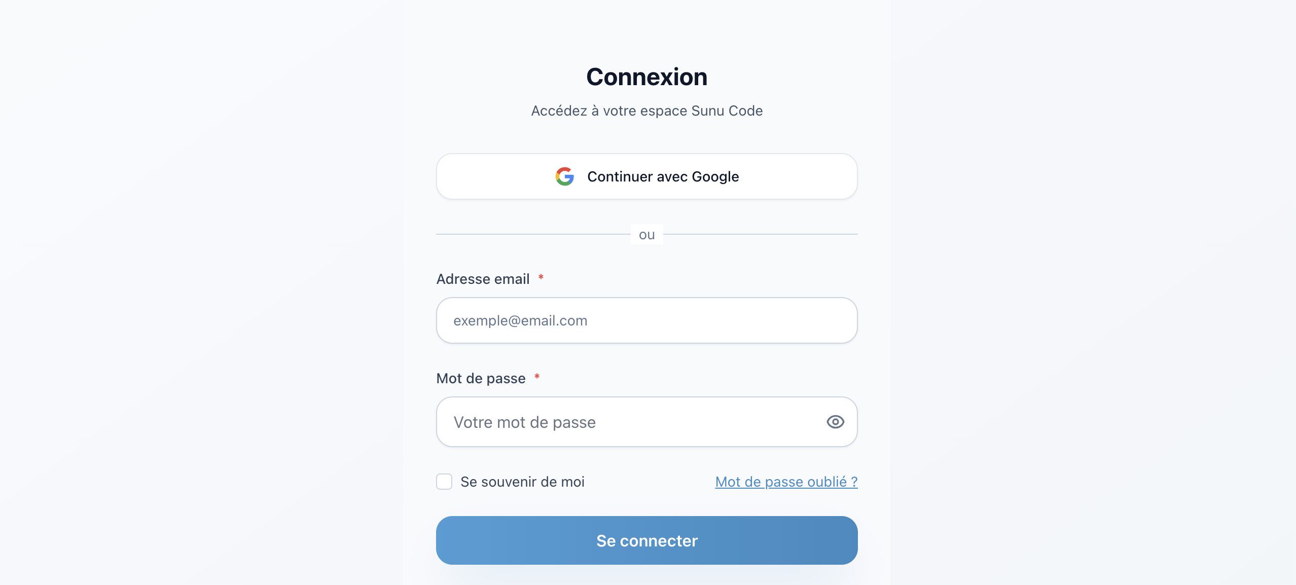 - Mot de passe (minimum 8 caractères)