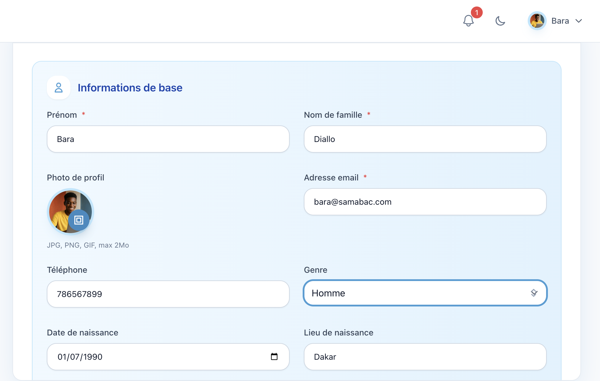 - Photo de profil