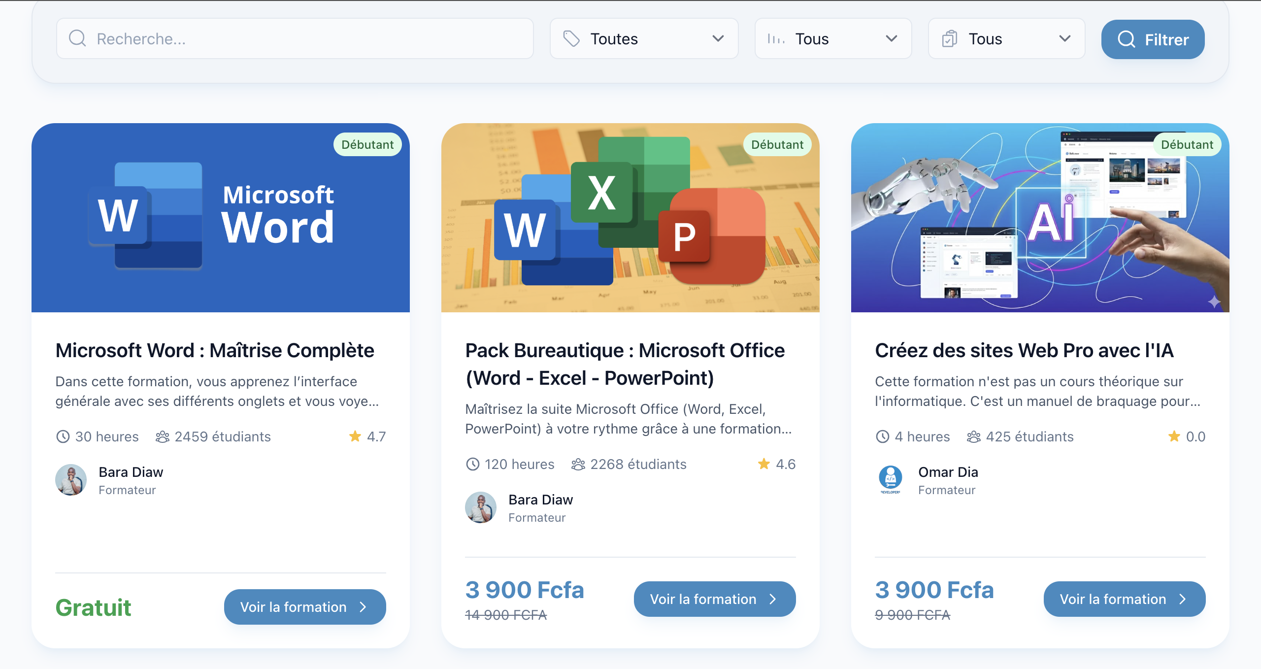 - Gratuite : Prix 0 FCFA → Accès immédiat