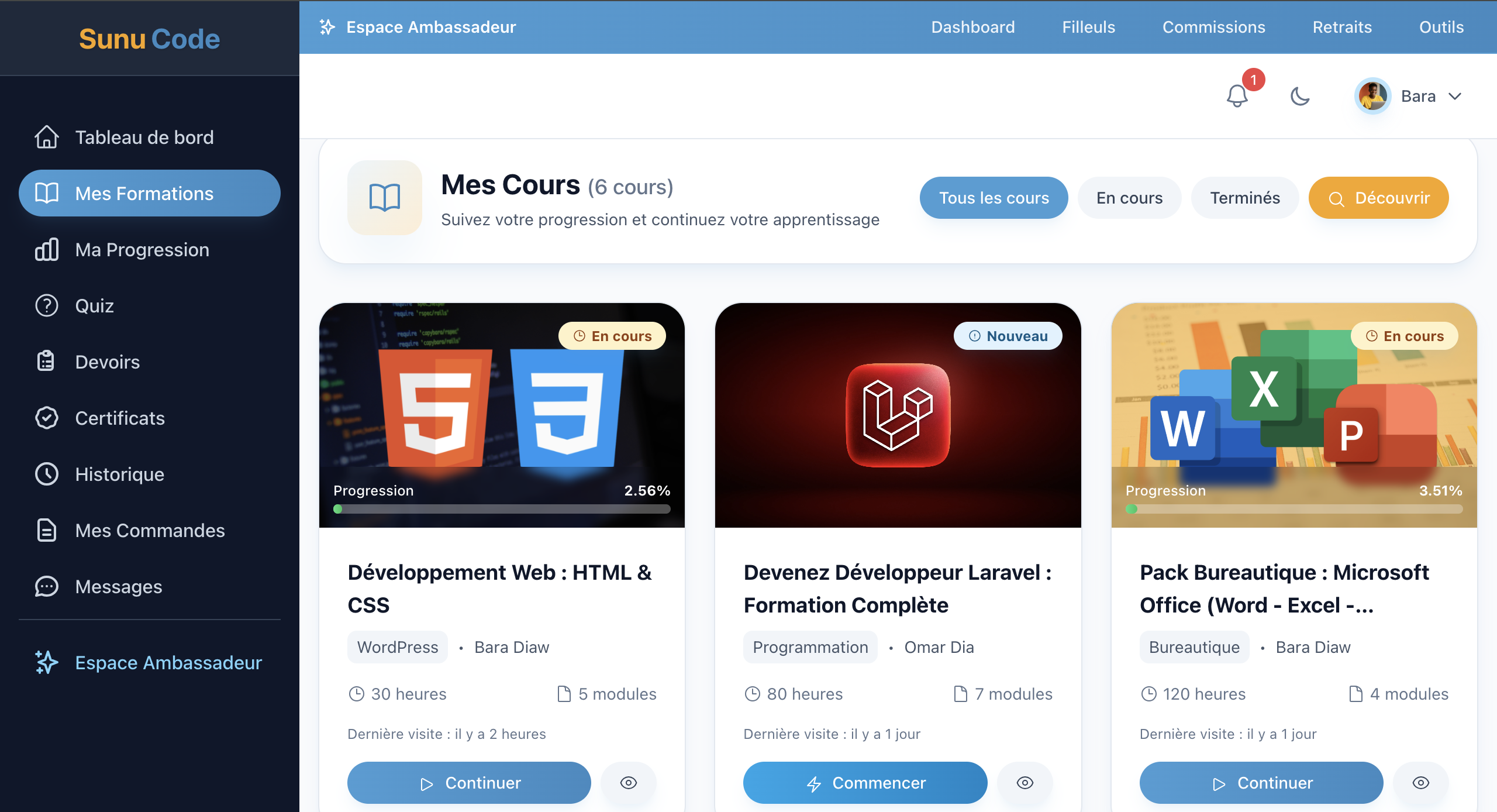 Tutoriel : S'inscrire et Suivre une Formation sur Sunu Code