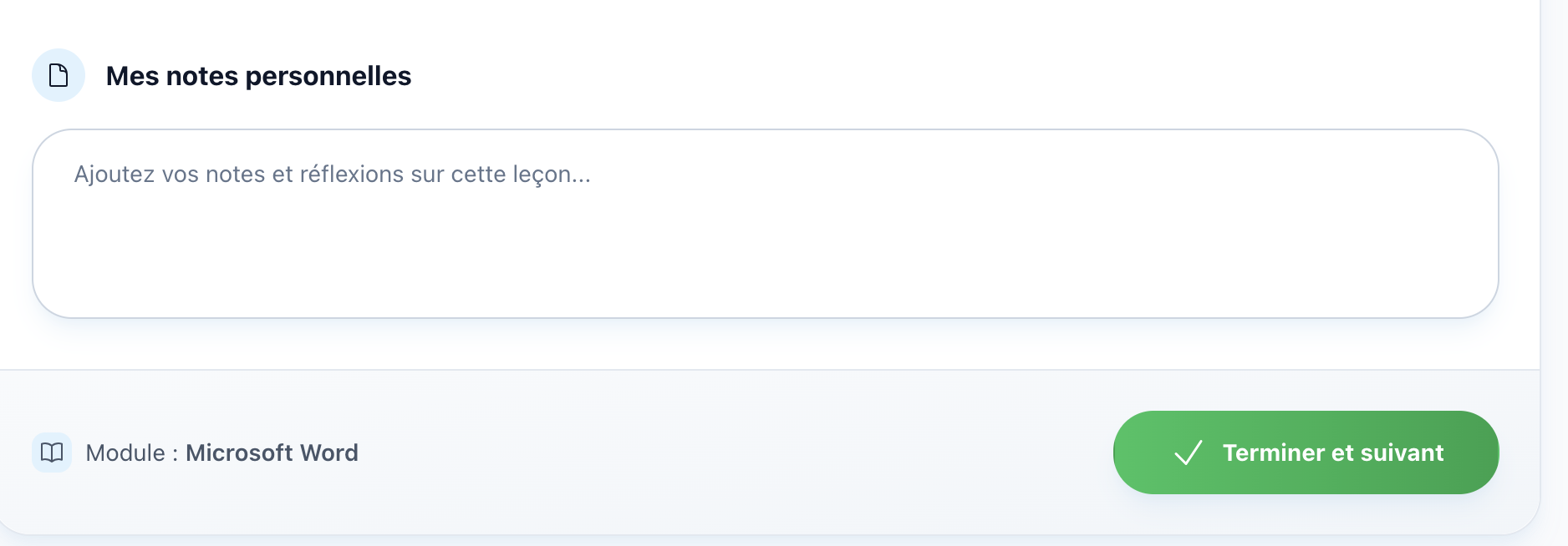 Note : Le bouton "Suivant" dans l'en-tête n'apparaît que si le chapitre est déjà terminé.